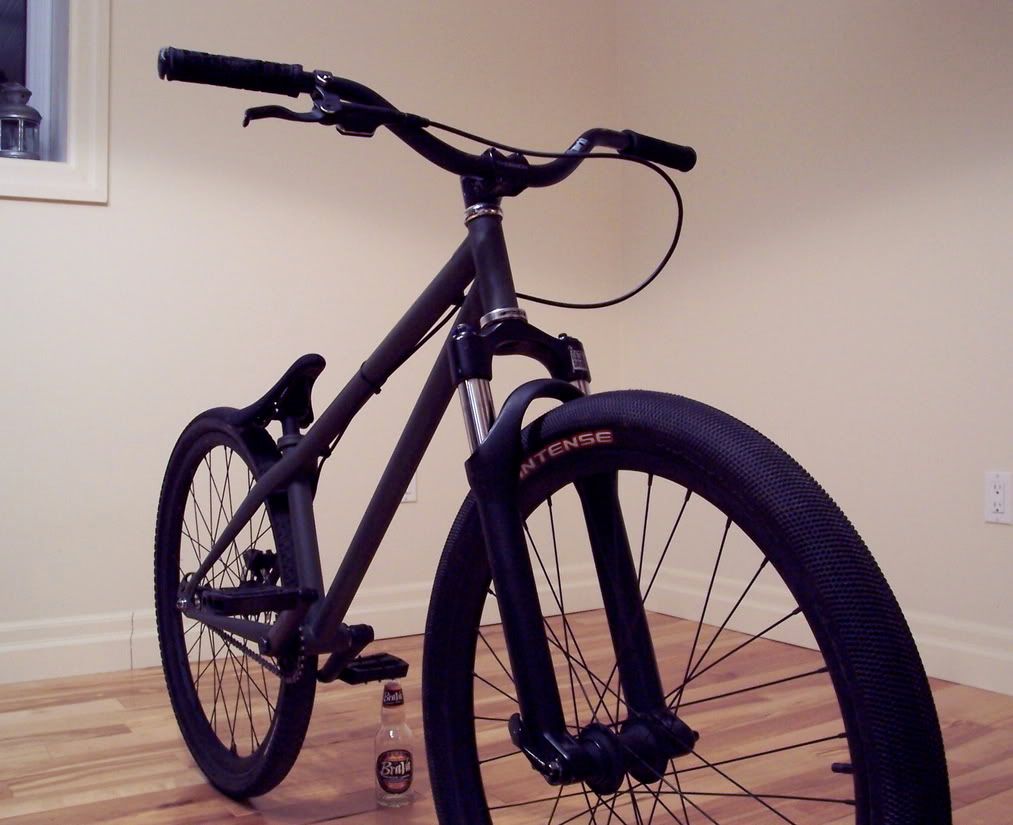 Modifications/Other/Extras: cut bars down an 1/8" / cut disc mounts off fork lowers / cut and drilled rear derailler hanger & drop out / running a front shimano lever for a rear. (helps save your hands for barspins)